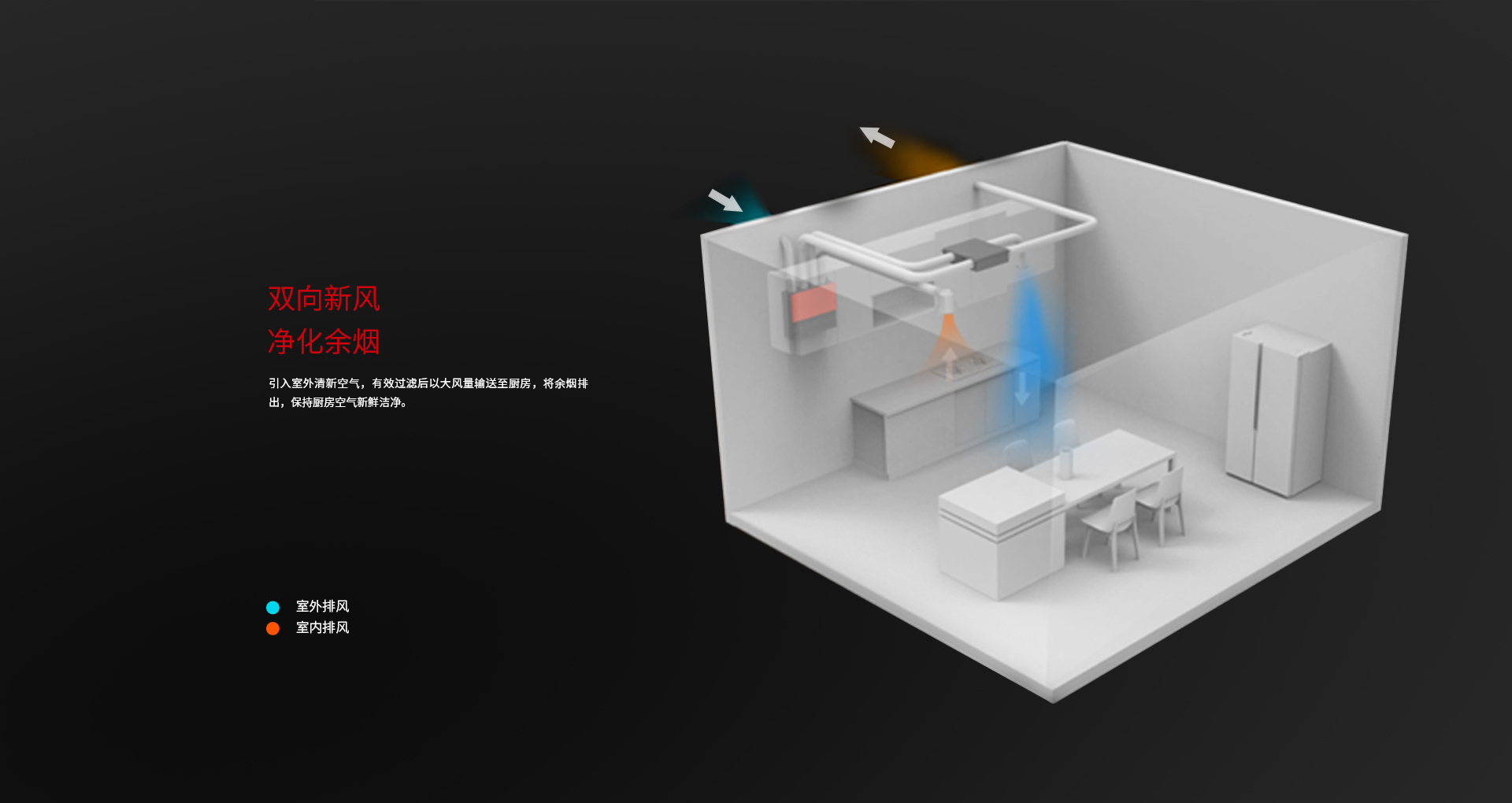 我們待在廚房的時間越來越長,對廚房環(huán)境的要求自然也越來越高。針對中國廚房油煙、異味殘留、高溫等痛點,庫靈圖首創(chuàng)廚房新風(fēng)系統(tǒng)。打造清新、舒適的廚房環(huán)境,讓我們更樂于在廚房逗留,享受品質(zhì)廚房生活。