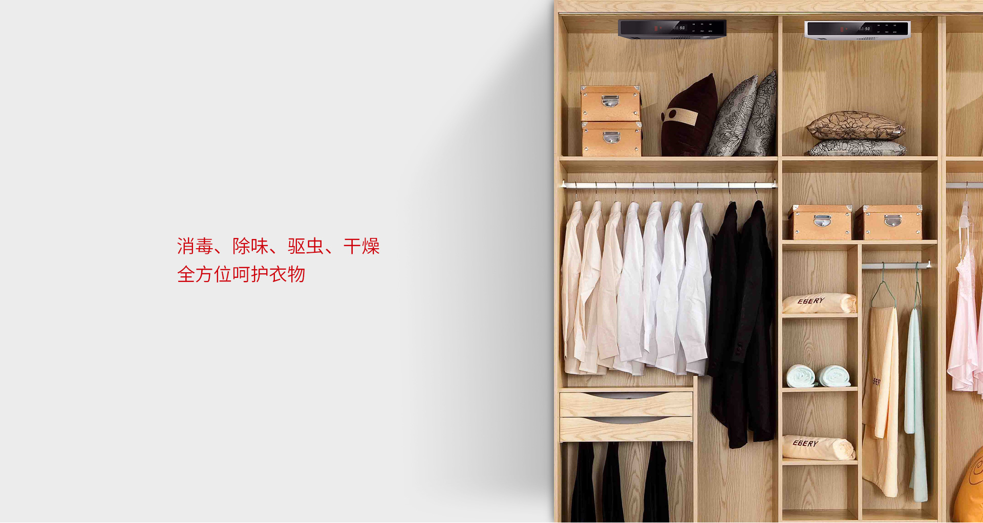 今天的衣柜設計,從收納規劃到使用體驗,都有很大的提升。而庫靈圖仍然注意到,衣柜受潮、發霉、異味、蟲子等問題,卻始終困擾著用戶。 為此,我們開發的烘干殺菌模塊,可應用于衣柜及其他儲物空間,解決用戶在日常使用的問題。